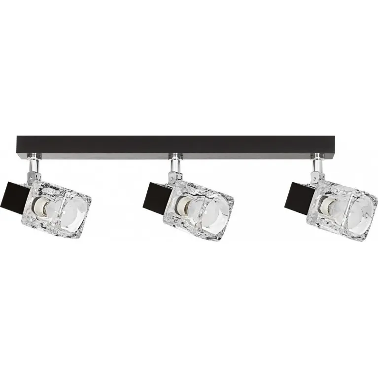 Светильник оснащен тремя источниками света с цоколем GU10, что позволяет использовать как традиционные, так и энергосберегающие или светодиодные лампы мощностью до 35 Вт. Это обеспечивает яркое и направленное освещение, идеально подходящее для акцентной подсветки или создания уютной атмосферы в комнате.