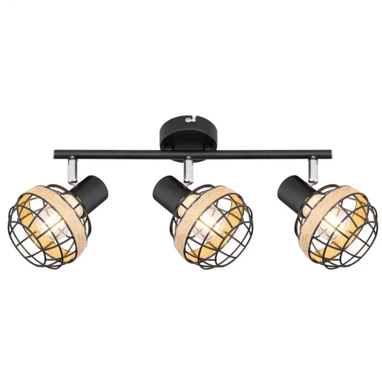 Светильник оснащен тремя источниками света с цоколем GU10, что позволяет использовать как традиционные, так и светодиодные лампы мощностью до 35 Вт. Такое решение обеспечивает яркое и направленное освещение, идеально подходящее для акцентной подсветки или создания уютной атмосферы в комнате.