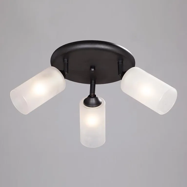 Корпус светильника изготовлен из прочного металла, что обеспечивает его долговечность и стойкость к внешним воздействиям. Спот оснащен тремя плафонами, которые направляют свет в нужные зоны, создавая акцентное освещение и подчеркивая отдельные элементы интерьера. Плафоны выполнены из высококачественного матового стекла, которое придает свету мягкость и равномерность.