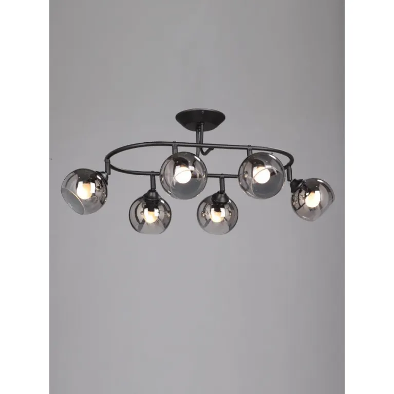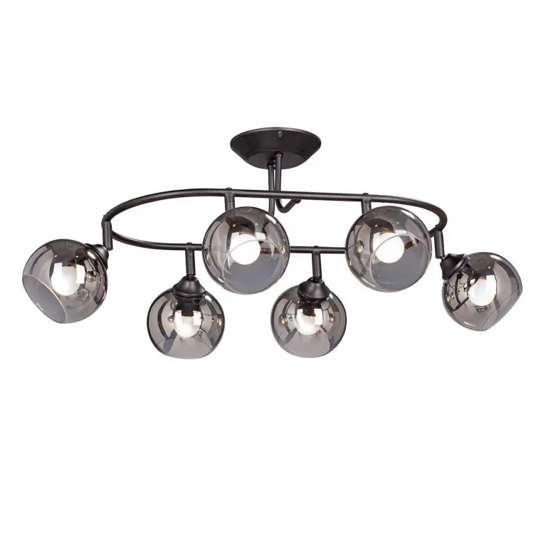 Корпус светильника изготовлен из прочного металла, что обеспечивает его долговечность и стойкость к внешним воздействиям. Спот оснащен шестью плафонами, которые направлены в разные стороны, что позволяет создавать яркое и равномерное освещение в помещении. Плафоны выполнены из высококачественного стекла, что гарантирует их долговечность и сохранение первоначального внешнего вида.