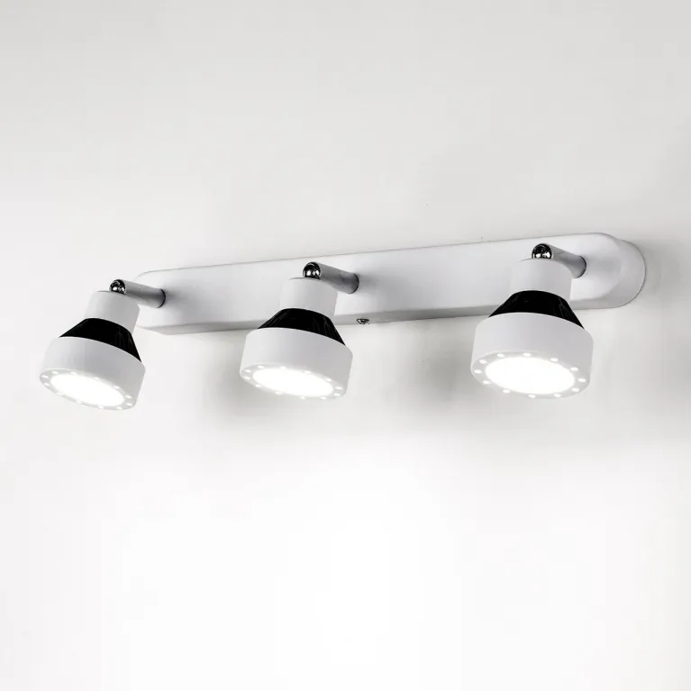 Корпус светильника изготовлен из высококачественного металла и имеет черное матовое покрытие, которое прекрасно гармонирует с различными стилями оформления. Спот оснащен тремя источниками света, что обеспечивает широкое и равномерное рассеивание света, создавая комфортное освещение в помещении.