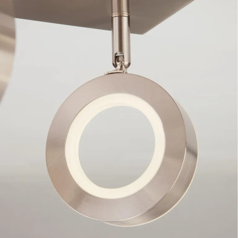 Изготовленный из прочного металла, корпус светильника имеет покрытие цвета сатин никель, которое придает изделию элегантный и современный вид. Спот крепится на потолок или стену и имеет лаконичную и стабильную конструкцию, обеспечивая простоту монтажа и надежность в использовании.