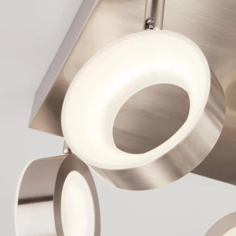 Светильник оснащен четырьмя источниками света, что обеспечивает яркое и равномерное освещение пространства. Суммарная мощность светодиодов составляет 48 Вт, что эквивалентно традиционным лампам накаливания, но при этом потребляет значительно меньше энергии, что делает спот энергоэффективным решением.