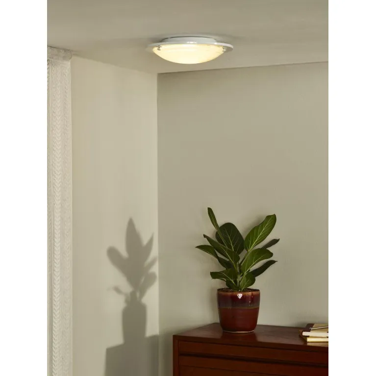 Корпус светильника выполнен из прочного металла с черным матовым покрытием, который прекрасно гармонирует с различными стилями интерьера. Плафон из белого матового стекла обеспечивает мягкое и равномерное рассеивание света, создавая комфортное освещение в помещении.
