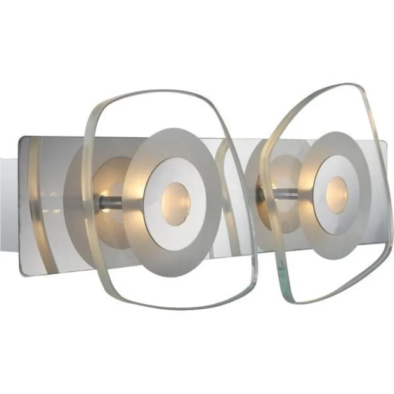 Светильник оснащен двумя источниками света с цоколем GU10, что позволяет использовать светодиодные или галогенные лампы мощностью до 33 Вт. Такое решение обеспечивает яркое и равномерное освещение, создавая комфортную атмосферу в помещении.