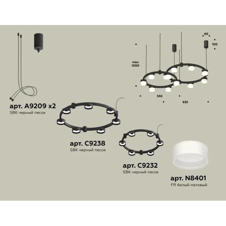 Комплект подвесного светильника Ambrella Light Techno Ring XR92091002 (A9209x2, C9238, C9232, N8401) в Нижнем Новгороде