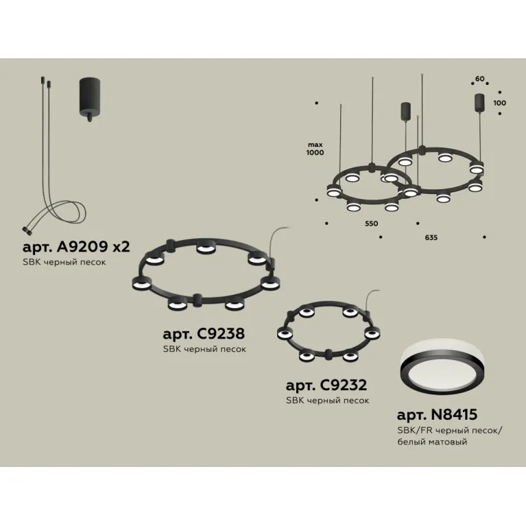 Комплект подвесного светильника Ambrella Light Techno Ring XR92091003 (A9209x2, C9238, C9232, N8415) в Нижнем Новгороде