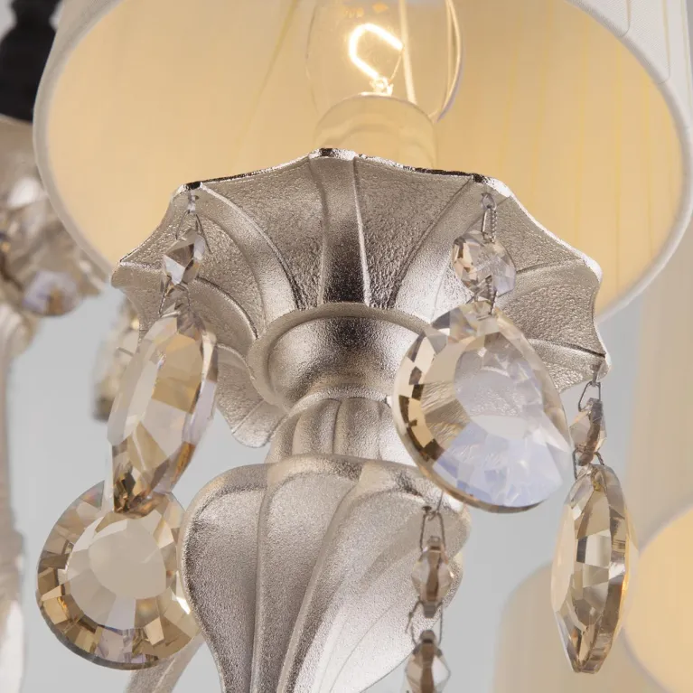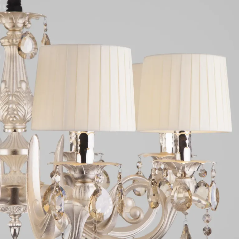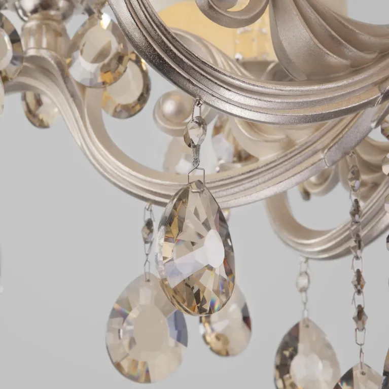 Эта люстра оснащена восемью источниками света, что обеспечивает яркое и равномерное освещение пространства. Она идеально подходит для просторных гостиной, столовой или спальни, добавляя им неповторимый шарм и утонченность.