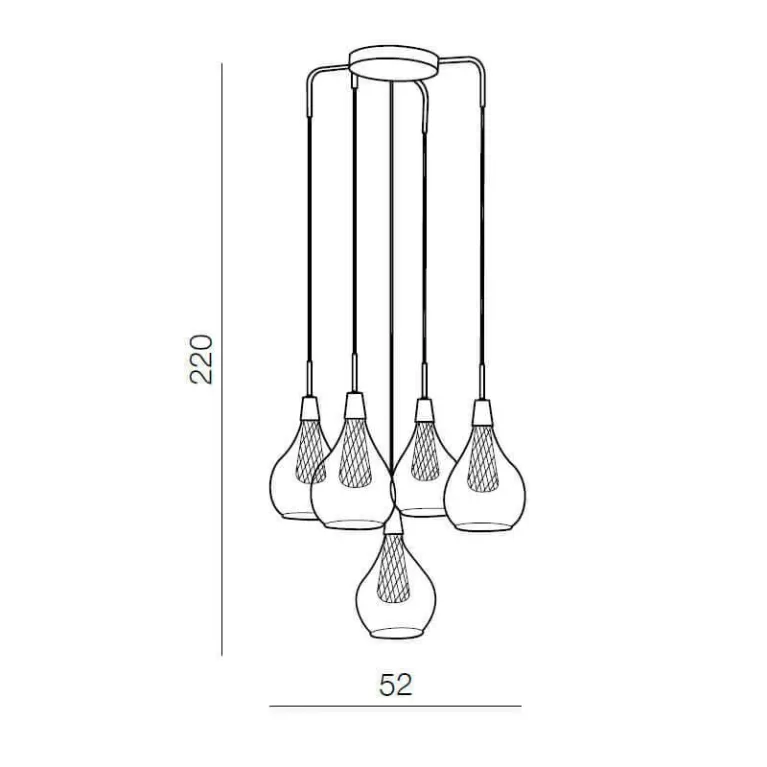 Светильник оснащен пятью источниками света с цоколем E27, что позволяет использовать как традиционные лампы накаливания, так и энергосберегающие или светодиодные. Суммарная мощность ламп - 300 Вт, что обеспечивает яркое и равномерное освещение пространства.