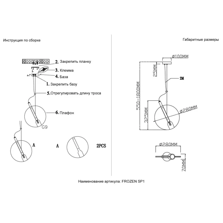 Подвесной светильник Crystal Lux FROZEN SP1 BRASS в Нижнем Новгороде