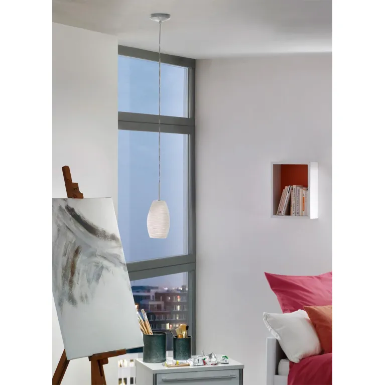 Корпус светильника выполнен из высококачественного металла, что гарантирует его долговечность и надежность. Подвесной способ монтажа позволяет регулировать высоту светильника, адаптируя его под размеры помещения и особенности интерьера.