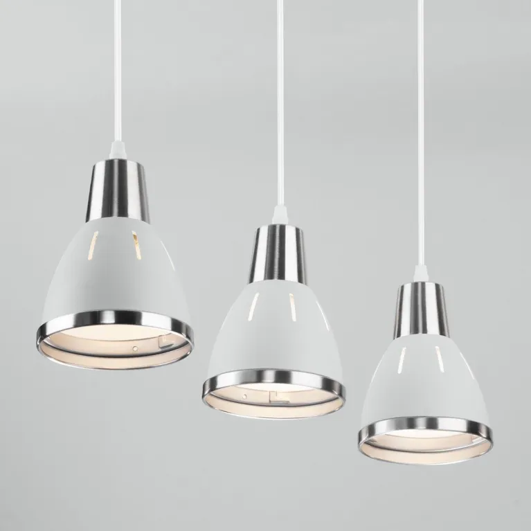 Корпус светильника выполнен из прочного металла с белым покрытием, которое придает изделию современный и стильный вид. Подвесной способ монтажа позволяет регулировать высоту светильника, адаптируя его под высоту потолков и особенности помещения.