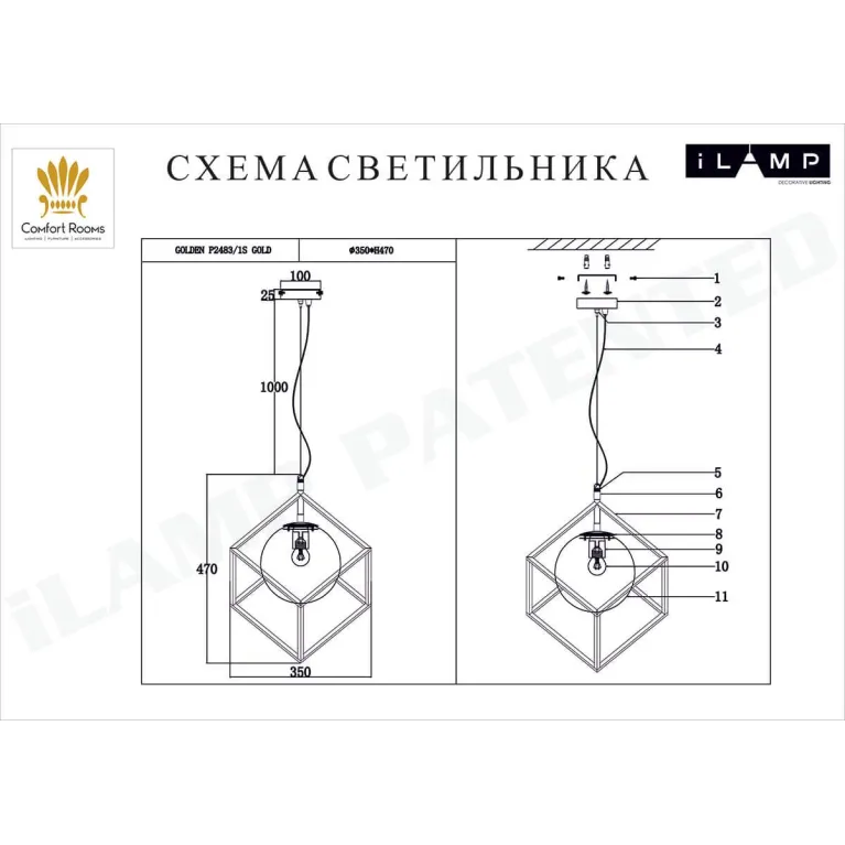 Подвесной светильник iLamp Golden P2483-1S GOLD в Нижнем Новгороде