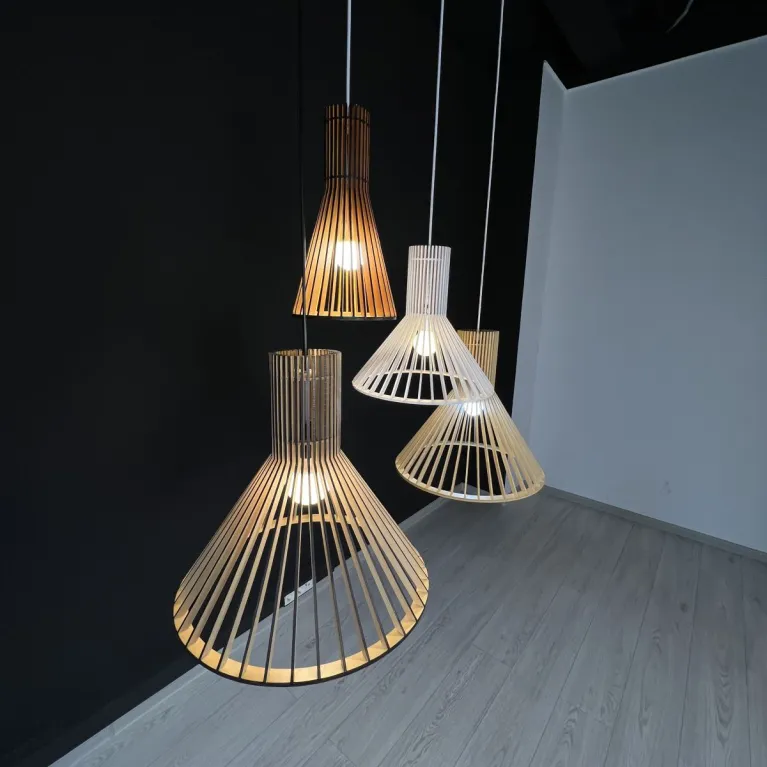 Светильники с деревянными плафонами коричневого цвета прекрасно впишутся в ваш интерьер.