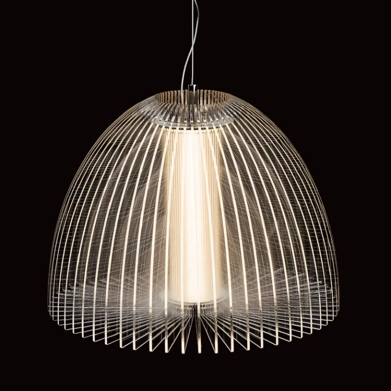 Высота подвеса светильника составляет 120 см, что делает его подходящим для помещений с высокими потолками. Плафон диаметром 250 мм выполнен из прочного и долговечного акрила, благодаря чему светильник гармонично сочетает в себе современный стиль и высокое качество.