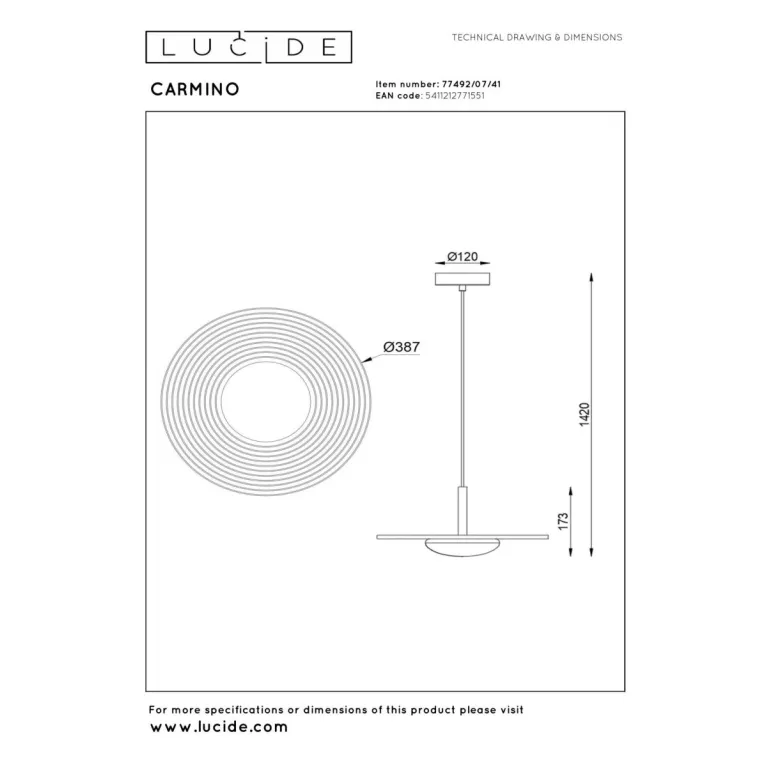 Подвесной светильник Lucide Carmino 77492/07/41 в Нижнем Новгороде из серии Carmino бельгийского производителя Lucide. В данном светильнике используются лампы с цоколем LED, суммарной мощностью 8 Вт. Модель оформлена в современном стиле и устанавливается на потолок. Она отлично подходит для гостинной.