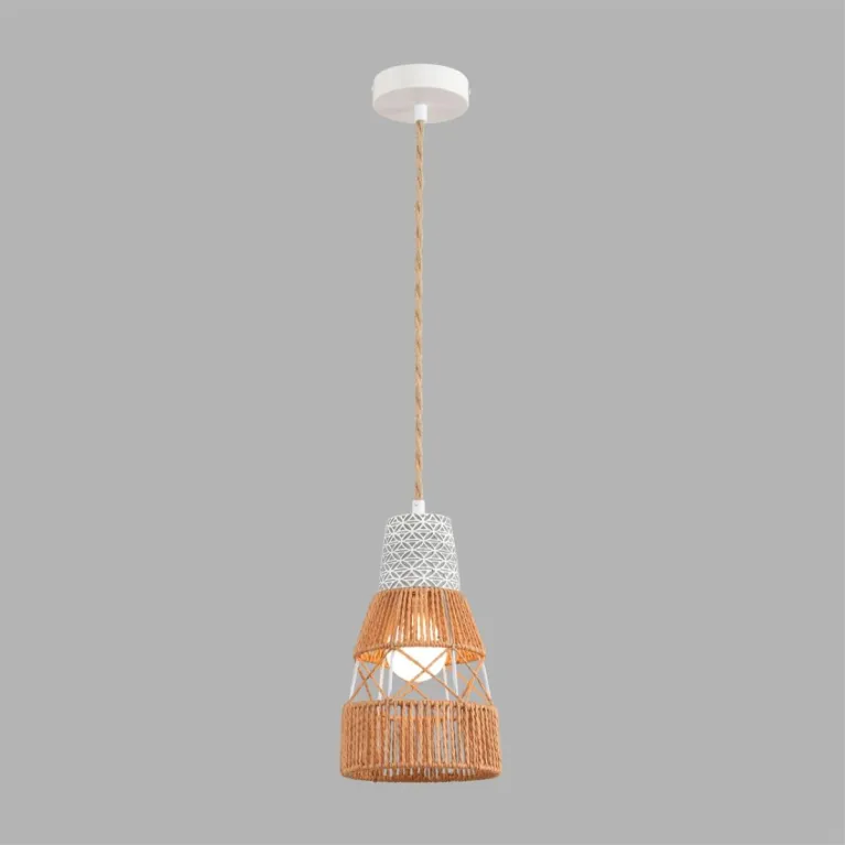 Светильники с джутовыми плафонами бежевого цвета прекрасно впишутся в ваш интерьер.