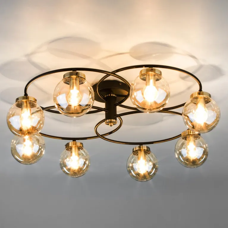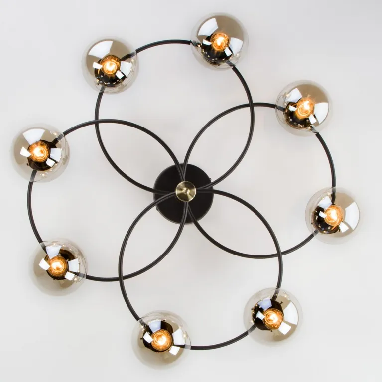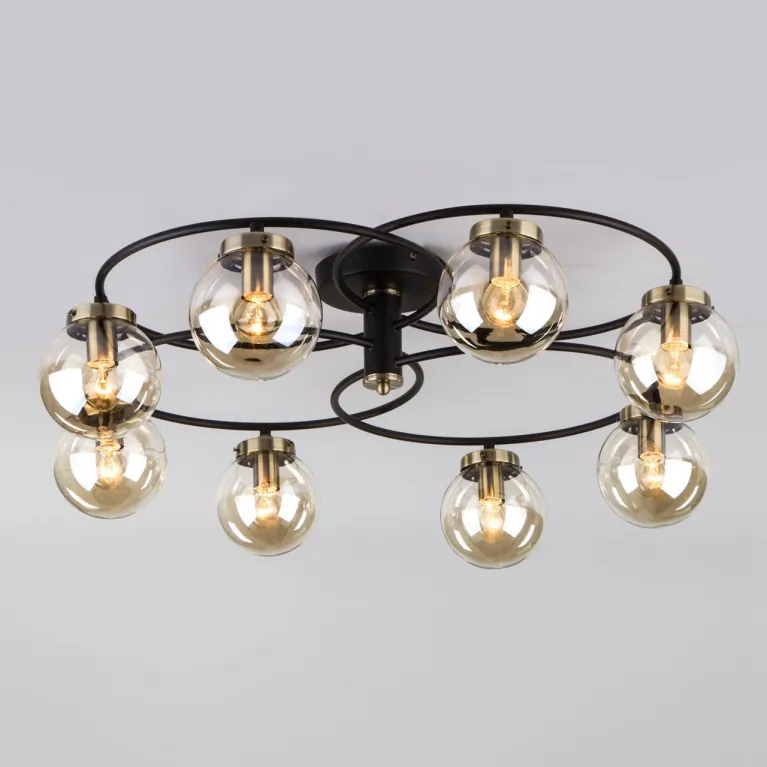 Люстра оснащена восьмью источниками света, что обеспечивает яркое и равномерное освещение пространства. Патрон E27 позволяет использовать лампы мощностью до 60 Вт, что гарантирует достаточный уровень света и создает уютную атмосферу в комнате.