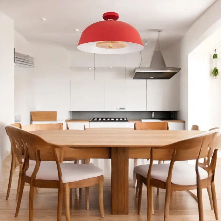 Светильники с металлическими плафонами красного цвета прекрасно впишутся в ваш интерьер.