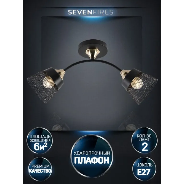 Потолочный светильник Seven Fires Bens SF3381/2C-BK-FGD-BK в Нижнем Новгороде из серии Bens российского производителя Seven Fires обеспечивает приятное для глаз освещение на площади 6 м2. В данном светильнике используются лампы с цоколем E27, суммарной мощностью 120 Вт. Модель оформлена в стиле лофт и устанавливается на потолок. Она отлично подходит в прихожую.