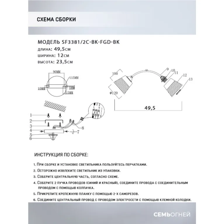 Эффектный и практичный светильник SF3381/2C-BK-FGD-BK защищен от пыли в соответствии со стандартом IP20 и будет долго служить владельцам. Цена 1 520 ₽ при заказе в интернет-магазине «Иллюзия света».