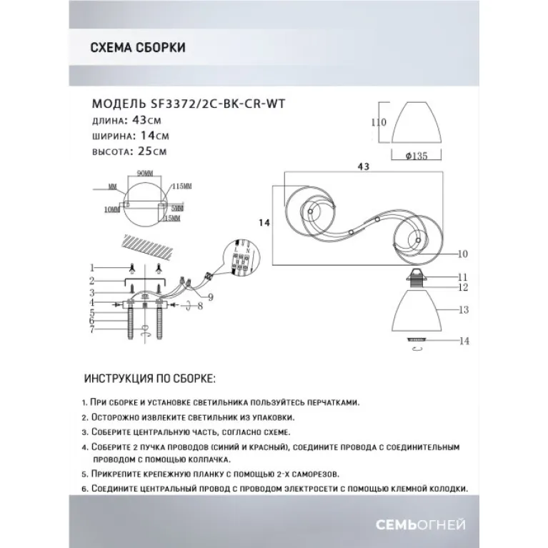 Изящный и надежный светильник SF3372/2C-BK-CR-WT защищен от пыли в соответствии со стандартом IP20 и будет долго служить владельцам. Цена 1 760 ₽ при заказе в интернет-магазине «Иллюзия света».