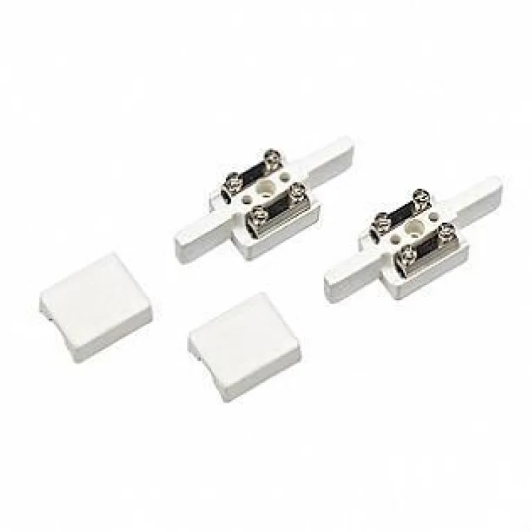 Корпус коннекторов выполнен из прочного пластика белого цвета, что позволяет им гармонично вписаться в любой интерьер. Элемент имеет компактные размеры и легкую конструкцию, благодаря чему он удобен в установке и обслуживании.
