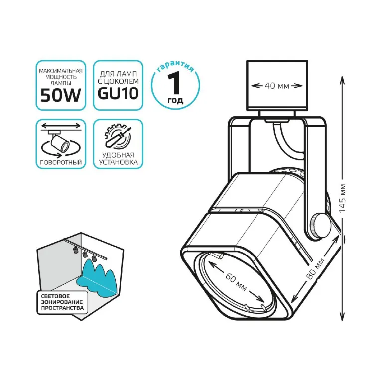 Трековый светильник Gauss Track Light Bulb TR009 в Нижнем Новгороде из серии Track Light Bulb российского производителя Gauss. В данном светильнике используются лампы с цоколем GU10, суммарной мощностью 50 Вт. Модель оформлена в современном стиле и устанавливается на потолок. Она отлично подходит для гостинной.