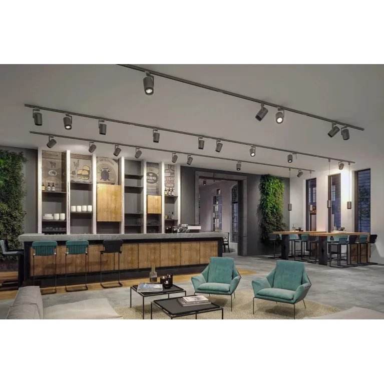 Благодаря системе крепления на трек, светильник легко монтируется и демонтируется, что позволяет адаптировать освещение под конкретные задачи и изменять его конфигурацию в зависимости от потребностей. Мобильное расположение источников света придает помещению динамизм и современный вид.