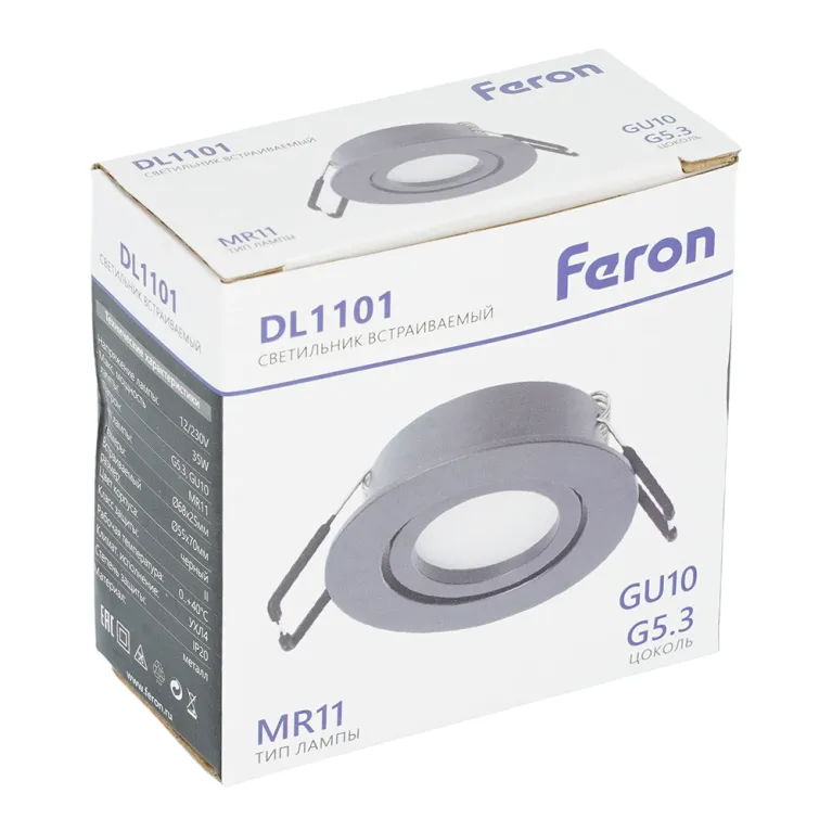 Встраиваемый светильник Feron DL1101 51947 в Нижнем Новгороде из серии DL1101 российского производителя Feron. В данном светильнике используются лампы с цоколем G5.3, суммарной мощностью 35 Вт. Модель оформлена в современном стиле и устанавливается в потолок. Она отлично подходит для прихожей.