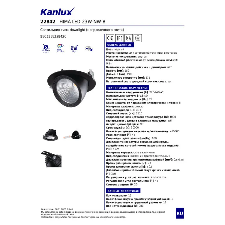 Встраиваемый светильник Kanlux Hima 22842 в Нижнем Новгороде