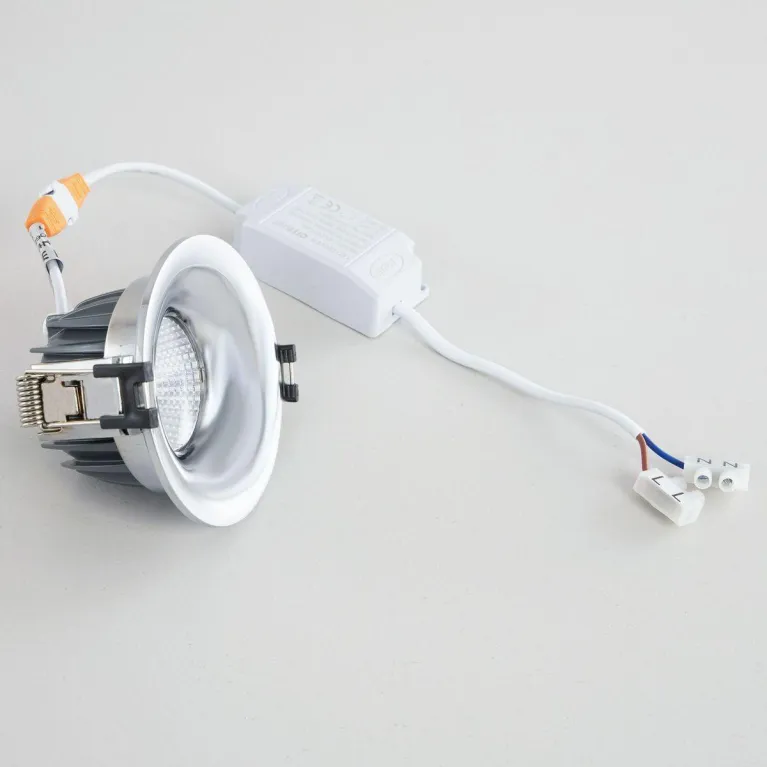 Матовое покрытие корпуса придает светильнику элегантный внешний вид и обеспечивает долговечность. Металлический каркас светильника надежно крепится к потолку, обеспечивая стабильное и безопасное размещение. Диаметр светильника составляет 120 мм, а его высота — 180 мм, что делает его подходящим для установки в помещения с низкими потолками.