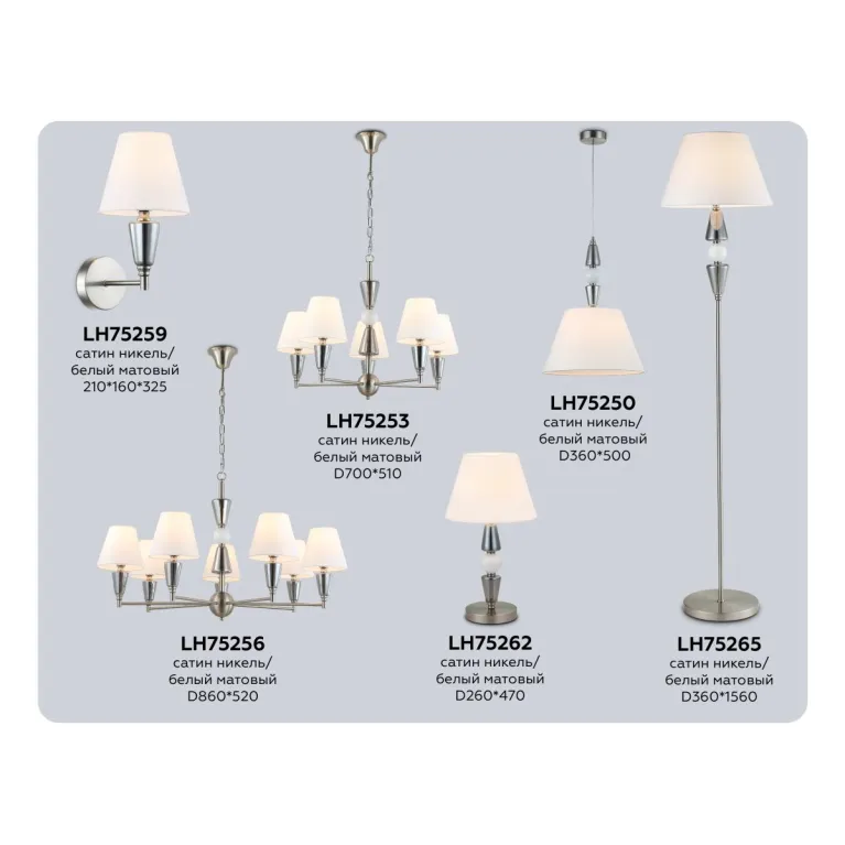 Материал, из которого изготовлен плафон белого цвета - тканевыми. Материал, из которого сделана арматура – металл. Цвет арматуры – матовый никель. Красивый торшер LH75265 защищен от пыли в соответствии со стандартом IP20 и подходит для длительной эксплуатации. Предлагаем купить эту модель в интернет-магазине «Иллюзия света» по цене 17 650 ₽.