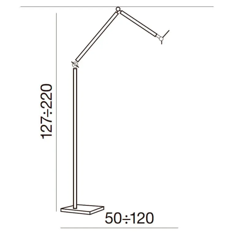 Корпус торшера выполнен из прочного металла с черным матовым покрытием, что придаёт изделию современный и стильный вид. Основание имеет высоту 120 см и диаметр 40 см, что обеспечивает достаточную зону освещения и делает торшер удобным для использования в помещениях разного размера.