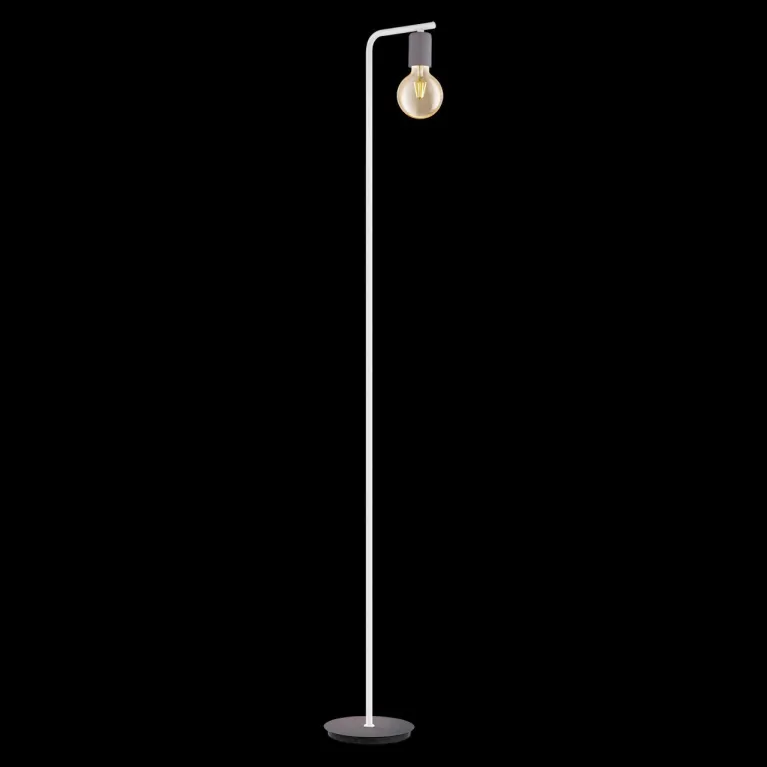 Корпус торшера выполнен из прочного металла с черным матовым покрытием, что придаёт изделию современный и стильный вид. Плафон из белого матового стекла обеспечивает мягкое и равномерное рассеивание света, создавая комфортное освещение в помещении.
