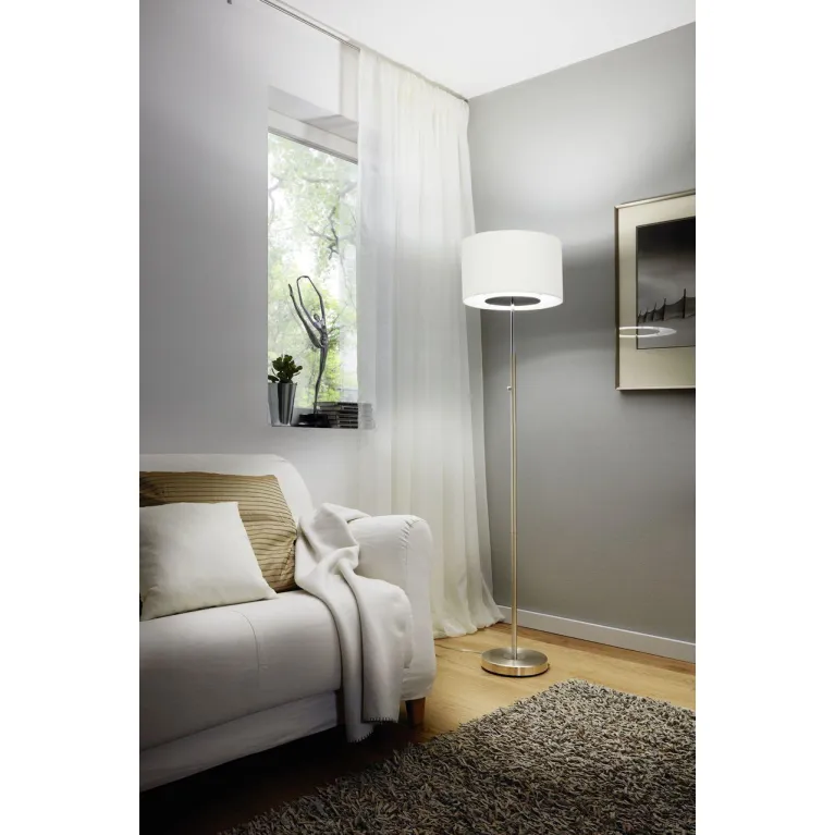 Материал, из которого изготовлен плафон белого цвета - тканевыми. Материал, из которого сделана арматура – металл. Цвет арматуры – матовый, никель. Интересный торшер 95335 защищен от пыли в соответствии со стандартом IP20 и подходит для длительной эксплуатации. Предлагаем купить эту модель в интернет-магазине «Иллюзия света» по цене 18 990 ₽.