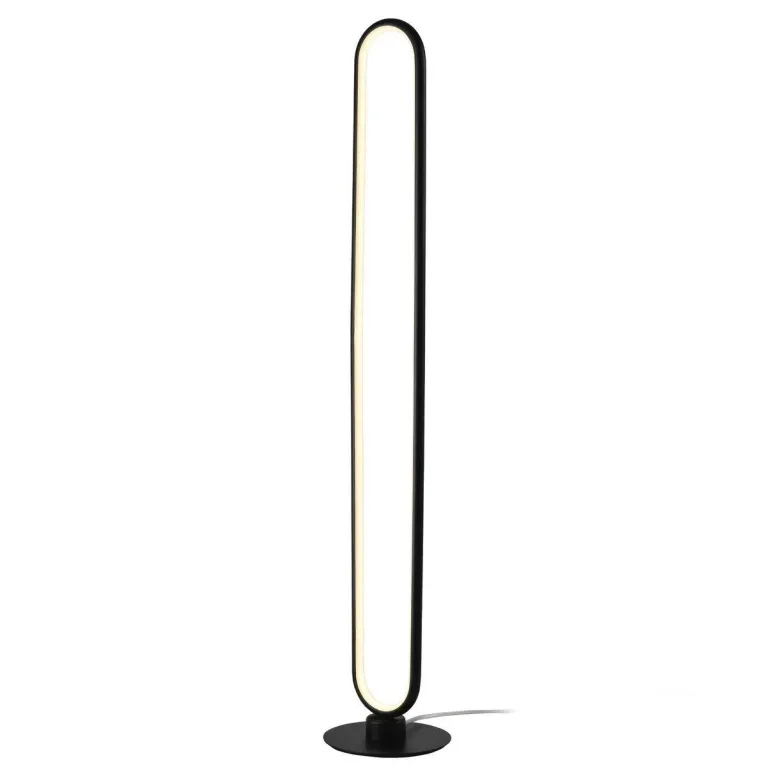 Корпус торшера выполнен из прочного металла с черным матовым покрытием, что придаёт изделию современный и лаконичный вид. Плафон из белого матового стекла обеспечивает мягкое и равномерное рассеивание света, создавая комфортное освещение в комнате.