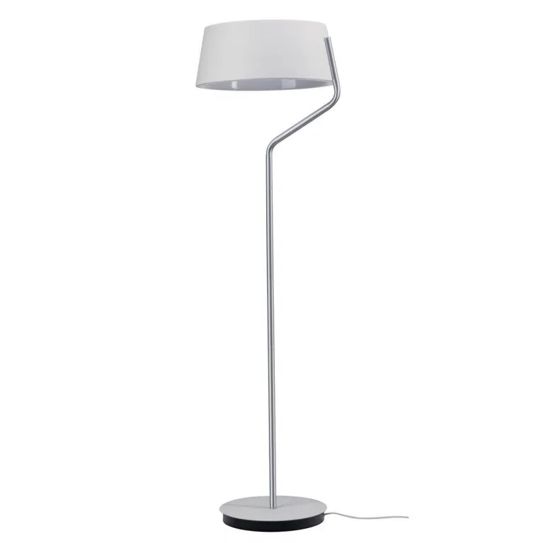 Корпус торшера изготовлен из прочного металла с белым покрытием, которое придаёт изделию современный и стильный вид. Плафон из белого матового стекла обеспечивает мягкое и равномерное рассеивание света, создавая приятную атмосферу в комнате.