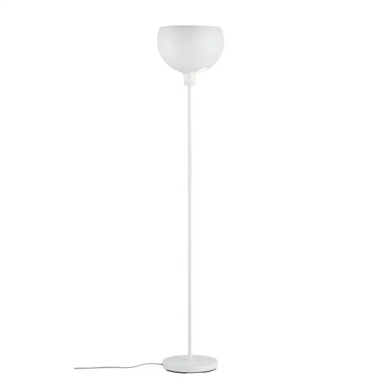 Корпус торшера выполнен из прочного металла с черным матовым покрытием, который прекрасно гармонирует с различными материалами и цветами мебели. Плафон из белого матового стекла обеспечивает мягкое и равномерное рассеивание света, создавая приятную атмосферу в комнате.