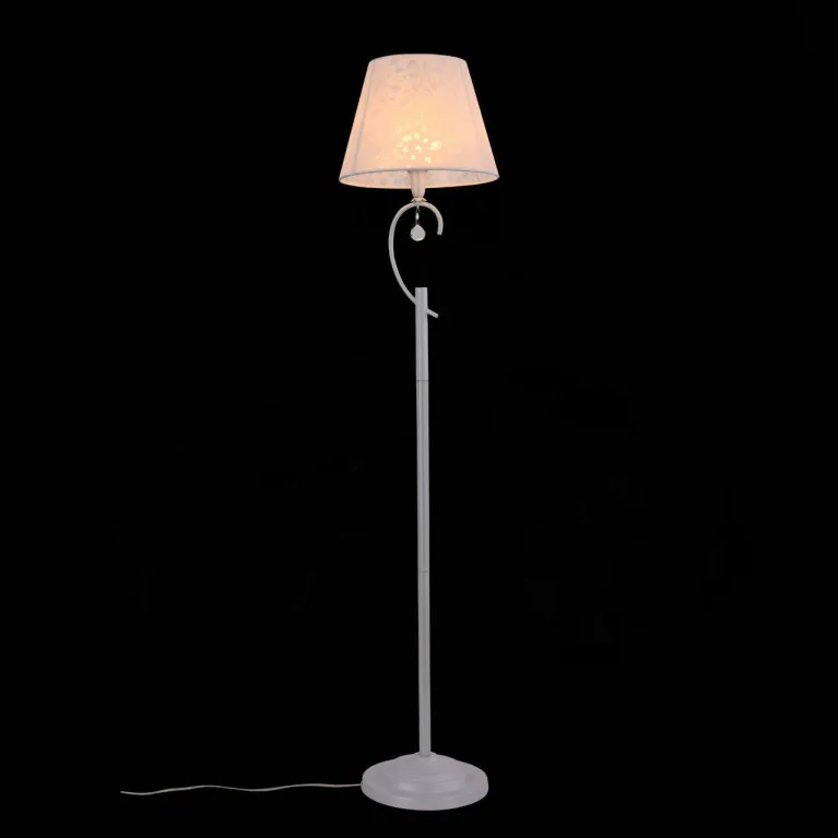 Корпус торшера выполнен из прочного металла с черным матовым покрытием, что придаёт изделию современный и стильный вид. Плафон из белого матового стекла обеспечивает мягкое и равномерное рассеивание света, создавая приятное освещение в комнате.
