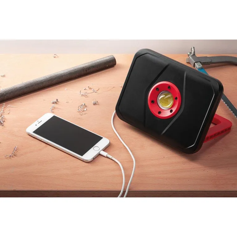 Аккумулятор типа Li-ion обеспечивает продолжительный срок службы фонаря и позволяет ему работать автономно на протяжении нескольких часов. Фонарь имеет степень защиты IP65, что гарантирует его стойкость к пыли и влаге, делая его идеальным для использования на строительных площадках, в гаражах или на приусадебных участках.