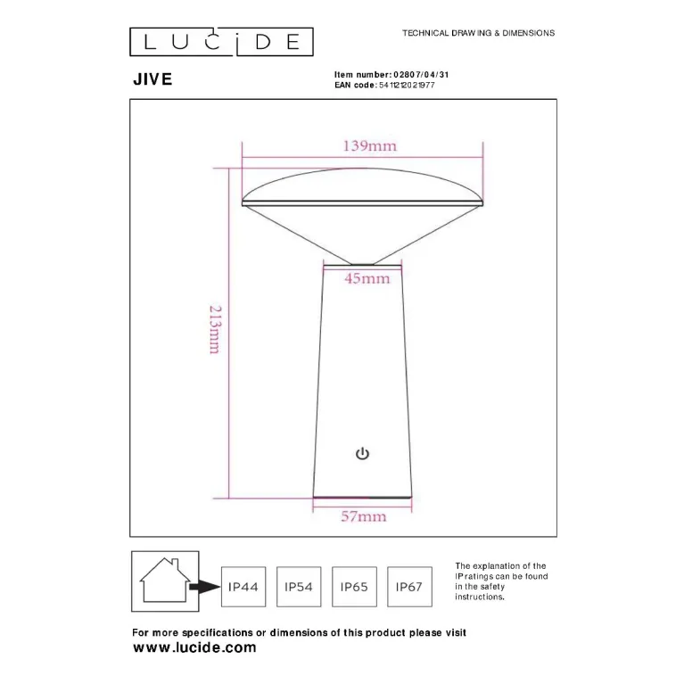 Уличный светильник Lucide Jive 02807/04/31 в Нижнем Новгороде бельгийского производителя Lucide относится к коллекции «Jive». Модель защищена от пыли и влаги по стандарту IP44 и подходит для использования за пределами помещения. Она легко устанавливается на стол и обеспечивает оптимальное освещение благодаря общей мощности 4 Вт. Эффектный и надежный светильник 02807/04/31 с пластиковыми плафонами белого цвета будет долго служить владельцу. Цена при заказе в интернет-магазине «Иллюзия света» – 8 170 ₽.